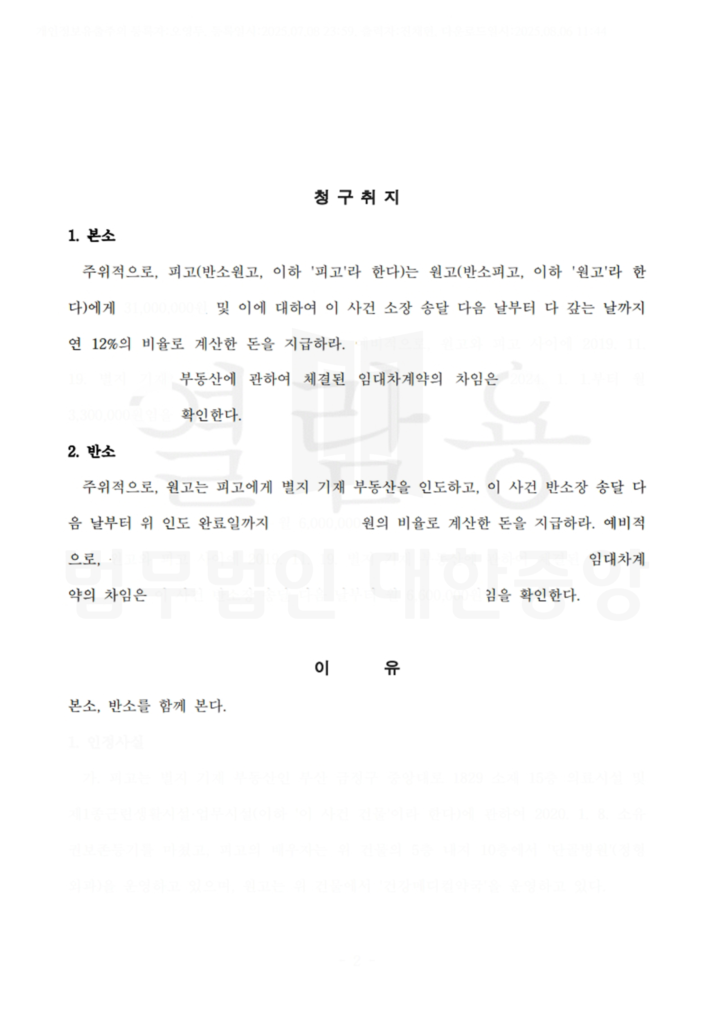 회원님의 소중한 개인정보는 다음과 같은 정책에 따라 수집 및 이용됩니다. '법무법인 대한중앙'에서는 해당 목적에 연관되는 개인정보만을 수집하며, 수집된 정보를 투명하고 안전하게 보호 관리할 것을 약속합니다. 이에 개인정보 수집및 이용에 대한 동의를 구합니다.개인정보의 수집·이용 목적