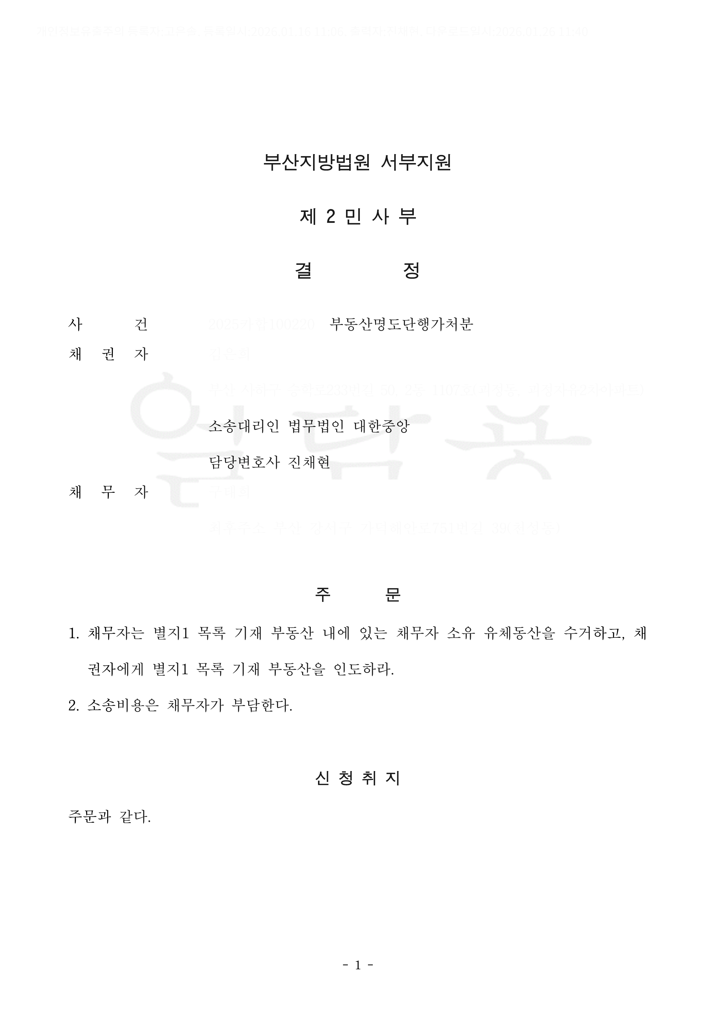 의뢰인은 해당 부동산을 매도 또는 임대하여 자금 확보가 시급한 상황이었는바, 신속한 집행이 이루어지는 것이 핵심인 사건사건 결과