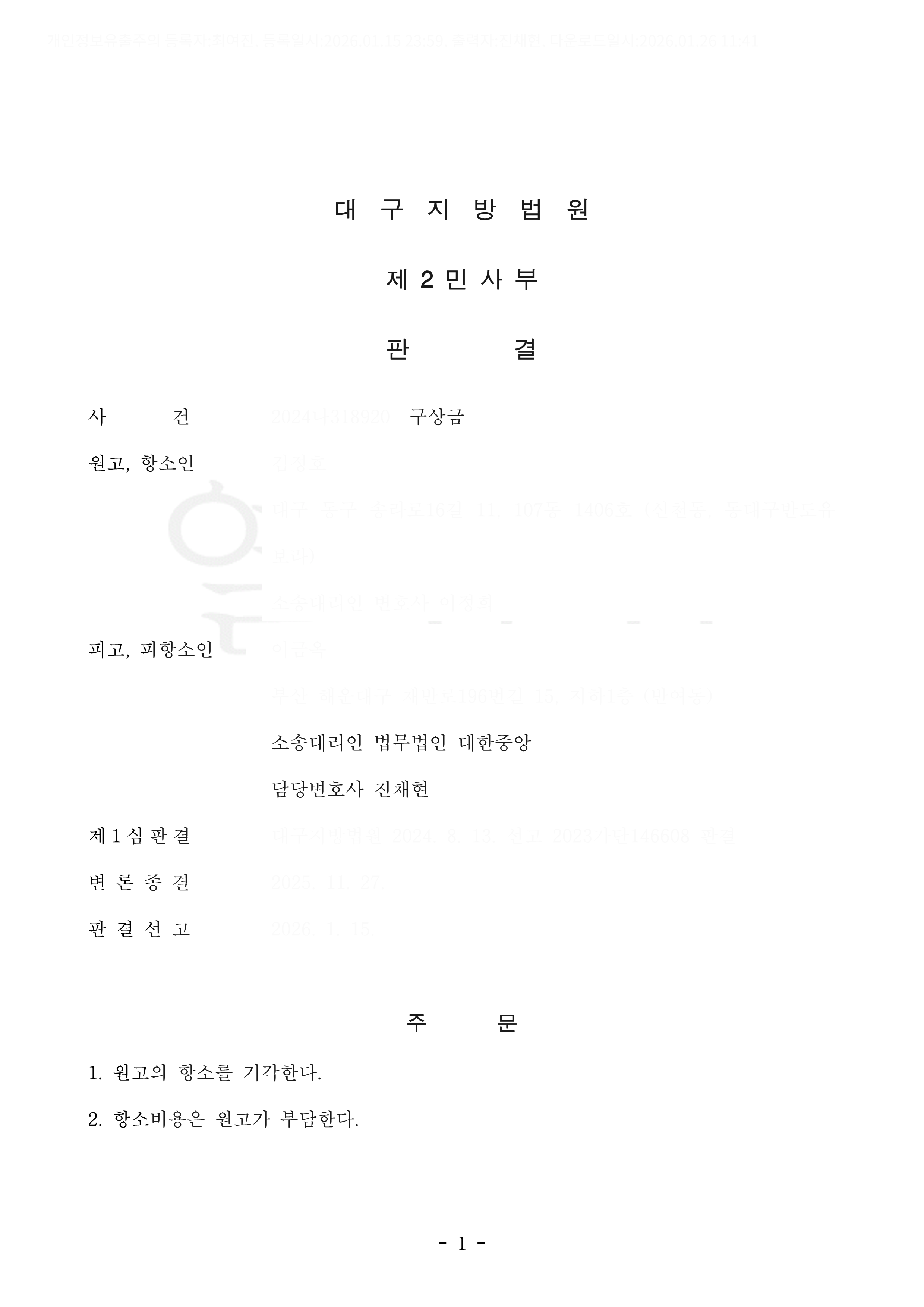 회원님의 소중한 개인정보는 다음과 같은 정책에 따라 수집 및 이용됩니다. '법무법인 대한중앙'에서는 해당 목적에 연관되는 개인정보만을 수집하며, 수집된 정보를 투명하고 안전하게 보호 관리할 것을 약속합니다. 이에 개인정보 수집및 이용에 대한 동의를 구합니다.개인정보의 수집·이용 목적