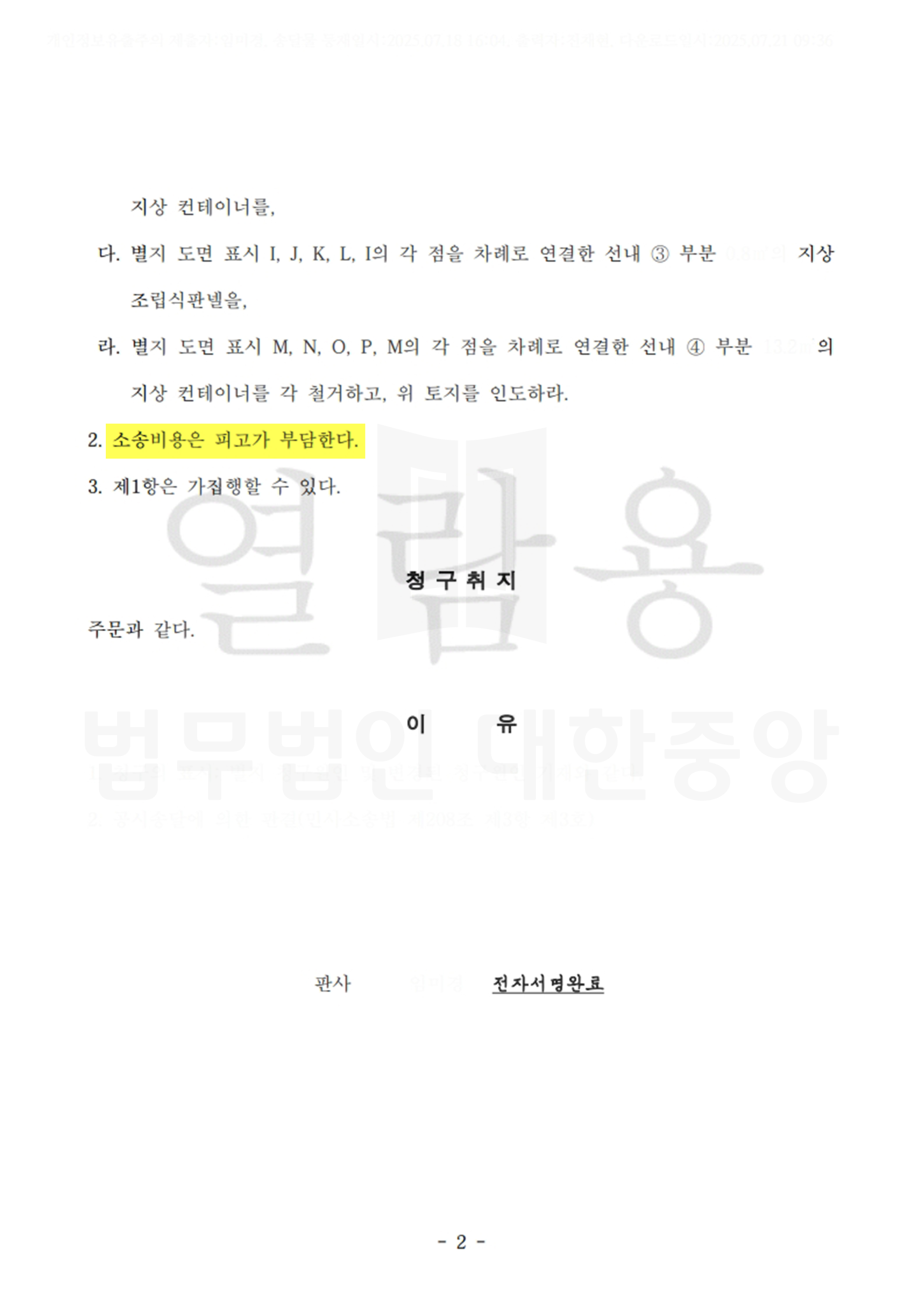 채권자 전부 인용 인도단행가처분의 빠른 인용과, 결정 후 집행관사무실과의 협업을 통하여 일주일 이내 불법건축물을 모두 철거하고, 집행비용확정 신청을 통하여 집행에 소요된 천만원이 넘는 금액을 전부 확정 받음.