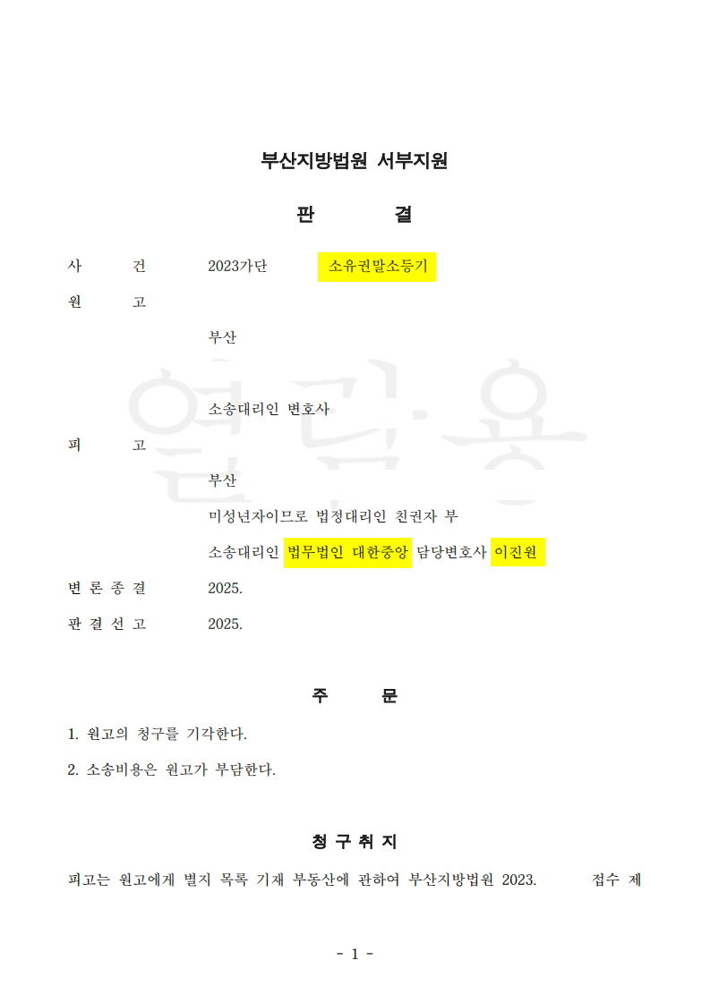 법원은 망인이 유언 당시 의사능력이 없었다는 점에 대한 증명책임은 원고에게 있다고 전제하였습니다. 그리고 비록 망인이 유언 작성 무렵 치매 진단을 받은 사실은 인정되나, 공증 당시 의식이 또렷했고 유언 의사를 명확히 표현한 점, 치매 진단 사실만으로 특정 시점의 의사무능력을 단정할 수 없는 점, 유증 내용이 비교적 단순한 점 등을 종합할 때, 원고가 제출한 증거만으로는 망인이 유언 당시 의사무능력 상태였다고 인정하기에 부족하다고 판단하였습니다. 따라서 유증은 유효하며 이를 원인으로 한 피고의 소유권이전등기 역시 유효하다고 보았습니다. 이에 법원은 원고의 청구를 기각하였습니다.
