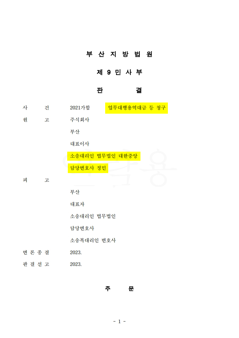 이 사건에서는 이 사건 업무대행용역계약이 유효한지, 계약 해지가 적법한지, 피고 조합에게 용역대금 지급의무가 존재하는지 및 그 범위가 핵심 쟁점이었습니다.사건 결과