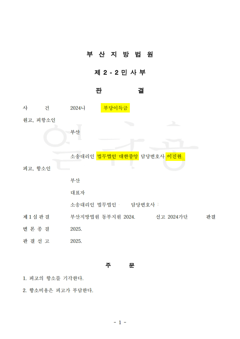 제1심에서는 조합원 가입계약시‘사업이 더 이상 진행되지 못할 경우 기지급된 분담금 등을 전액 환불해준다’는 내용으로 작성·교부된 안심보장증서 및 조합원 가입계약의 효력이 핵심 쟁점이었고,사건 결과