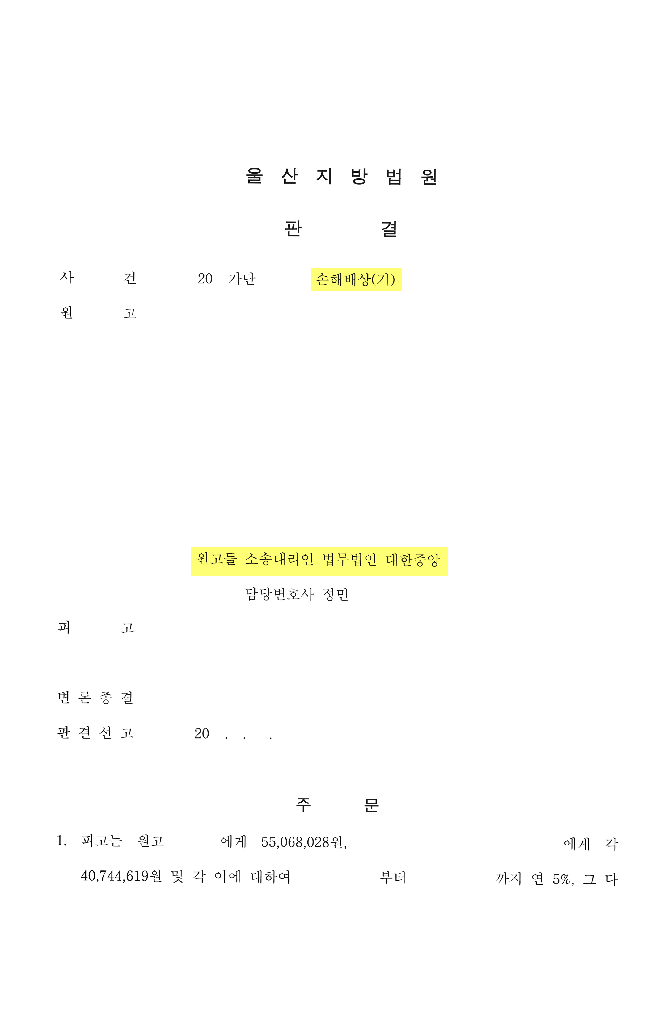법원은 피고의 불법행위 책임을 인정하여, 피고가 원고 A에게 55,068,028원, 원고 B, C, D에게 각 40,744,619원 및 이에 대한 지연손해금을 지급할 의무가 있다고 판단하였습니다. 다만, 이 사건 청구는 선행 소송과 별개의 추가 청구에 해당하므로, 소송촉진 등에 관한 특례법상 연 12%의 지연손해금 기산점은 이 사건 소장 부본 송달일 다음날인 2025. XX. XX.부터로 제한하여, 그 이전 기간에 대한 청구는 일부 기각하였습니다.